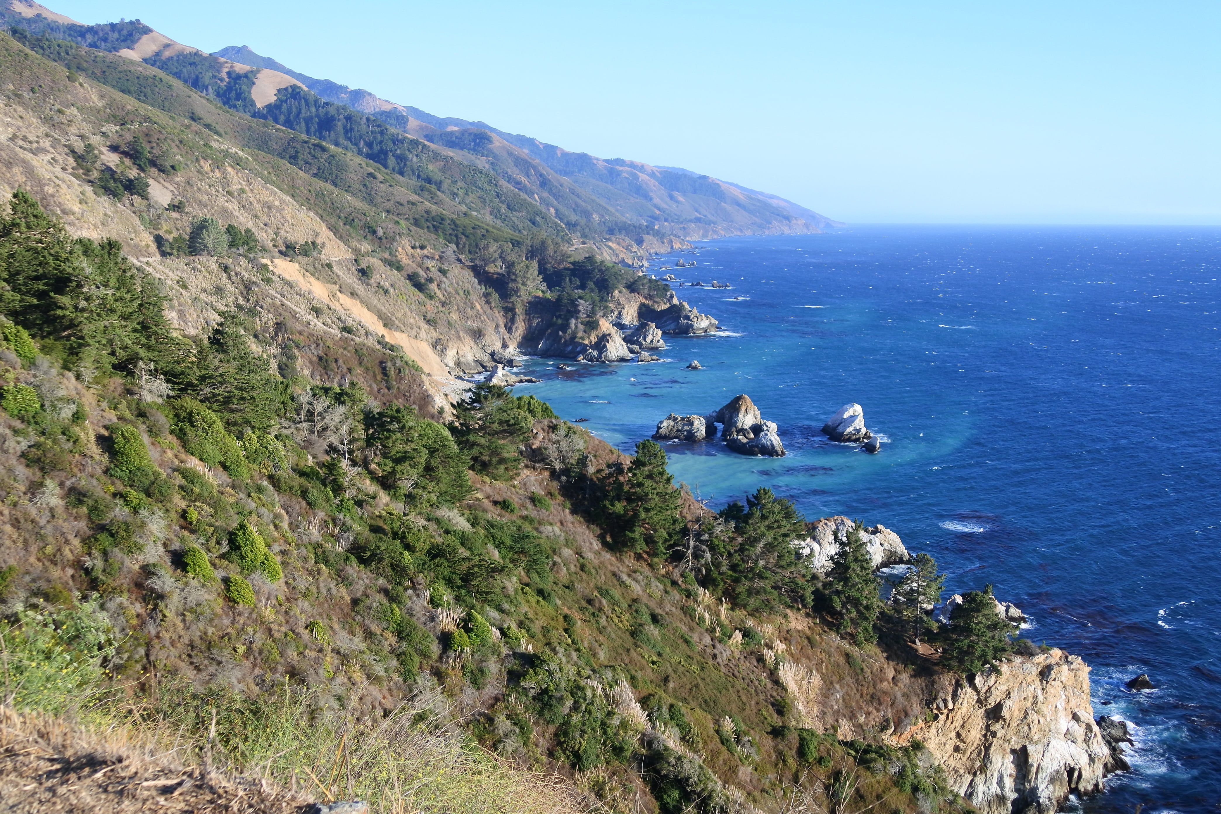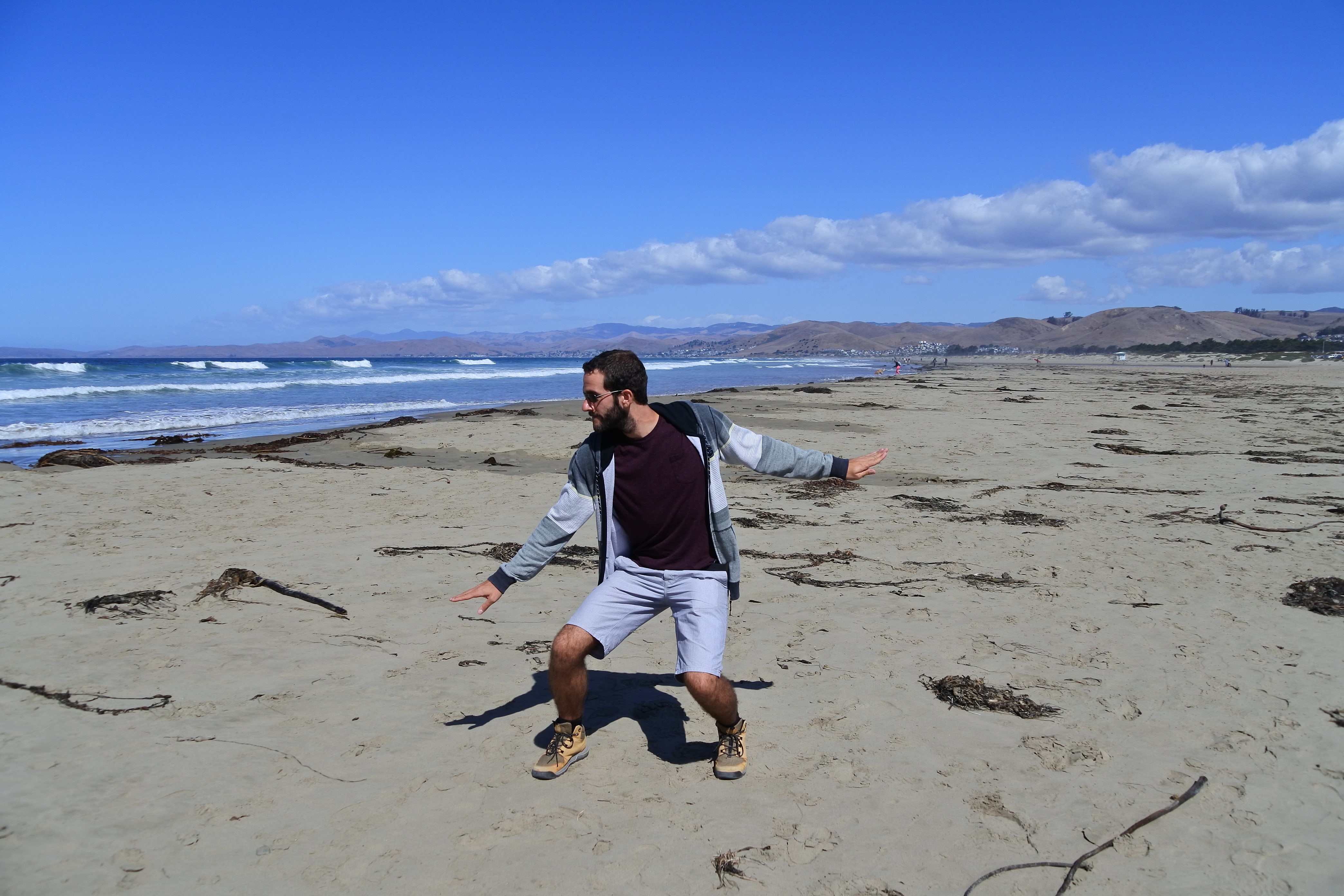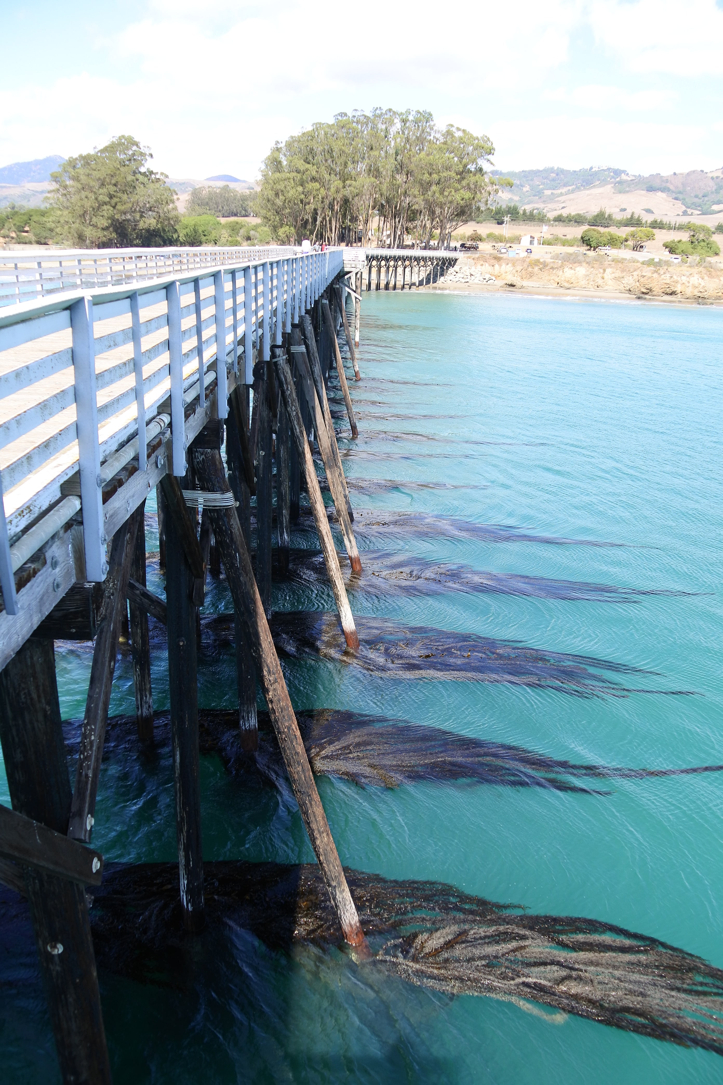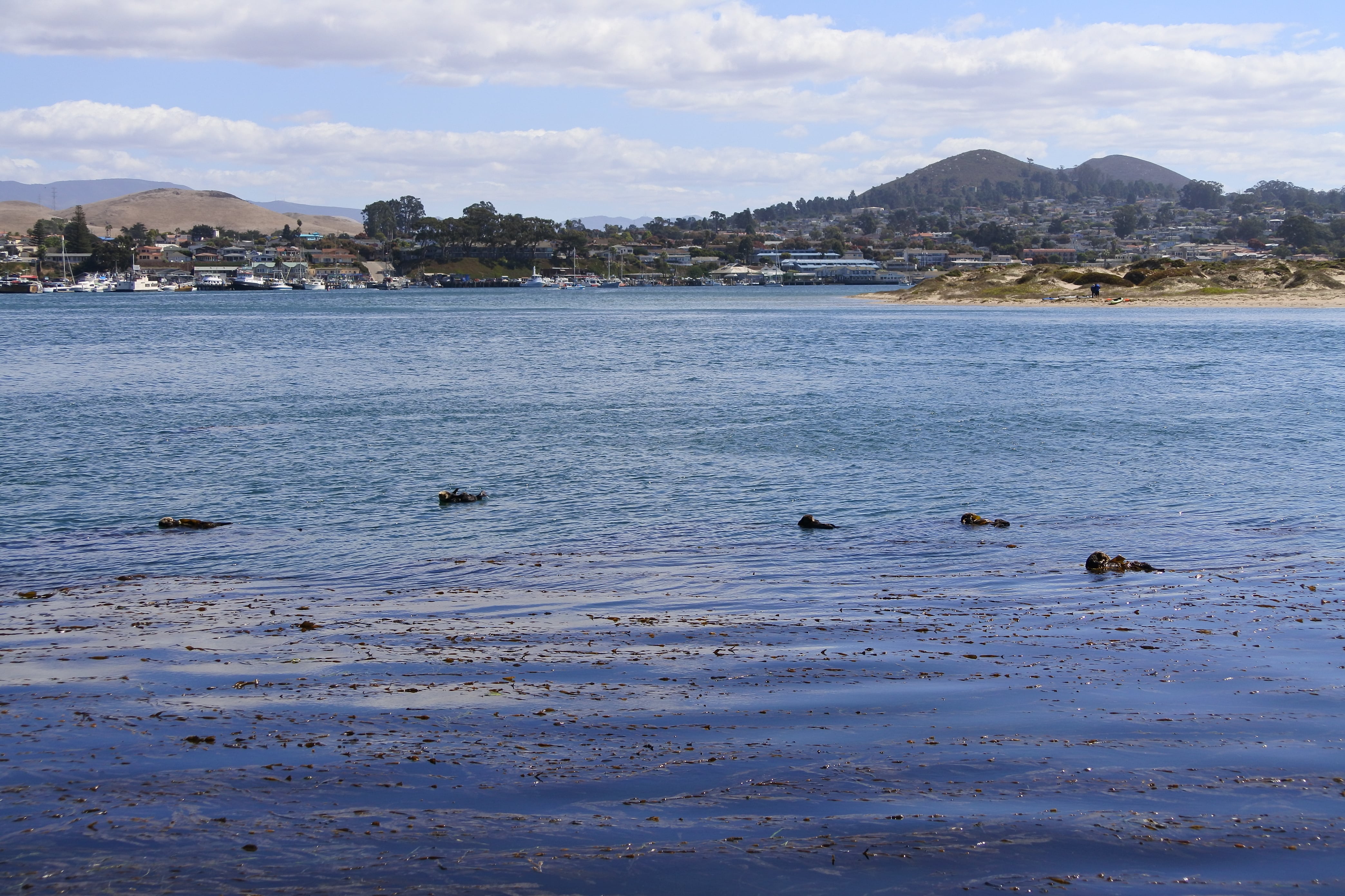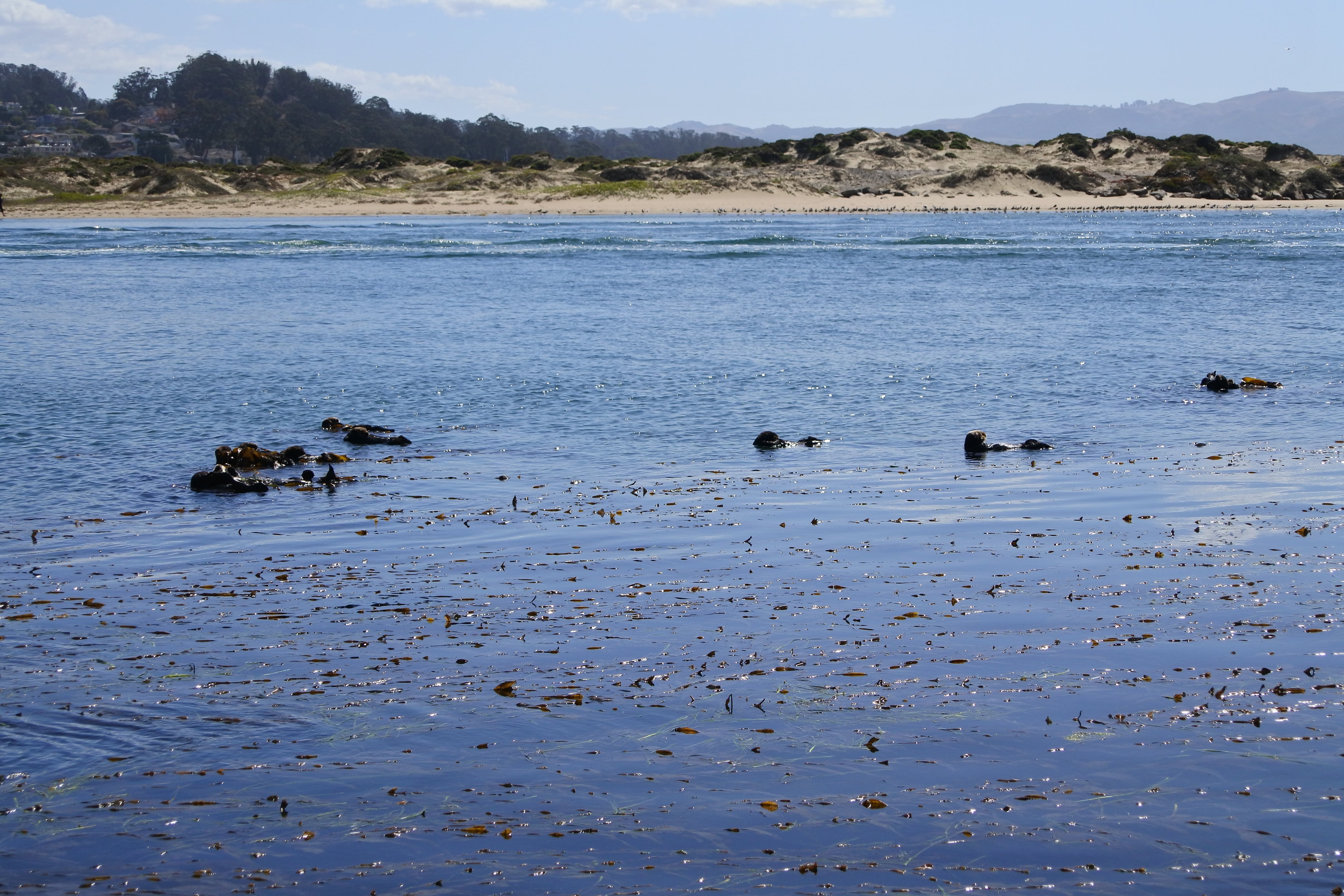 Aujourd’hui plusieurs étapes nous attendent. Le premier arrêt nous amène à Morro Bay sur une très grande (et très tranquille) plage au pied d’un énorme rocher. En soi rien de très particulier mais si on s’approche de l’eau de l’autre côté du parking, on peut apercevoir quelques loutres de mer qui semblent s’amuser comme des petites folles dans les algues ! Nous n’avons pas pu bien faire connaissance avec elles car elles sont restées assez loin du rivage, mais ce sont les tâches noires sur les photos. En revanche, ceux que nous avons pu voir de très près ce sont les nombreux petits écureuils qui circulent entre les rochers à la recherche des généreux touristes qui acceptent de partager leurs provisions. Le moins qu’on puisse dire c’est qu’ils ne sont pas timides ! Ils sont craquants, mais on se demande encore si ce sont simplement de gros écureuils qui mangent trop (et qui nous ont fait penser à Isis) ou bien une autre race d’écureuils ou rongeurs, il faut qu’on se renseigne…