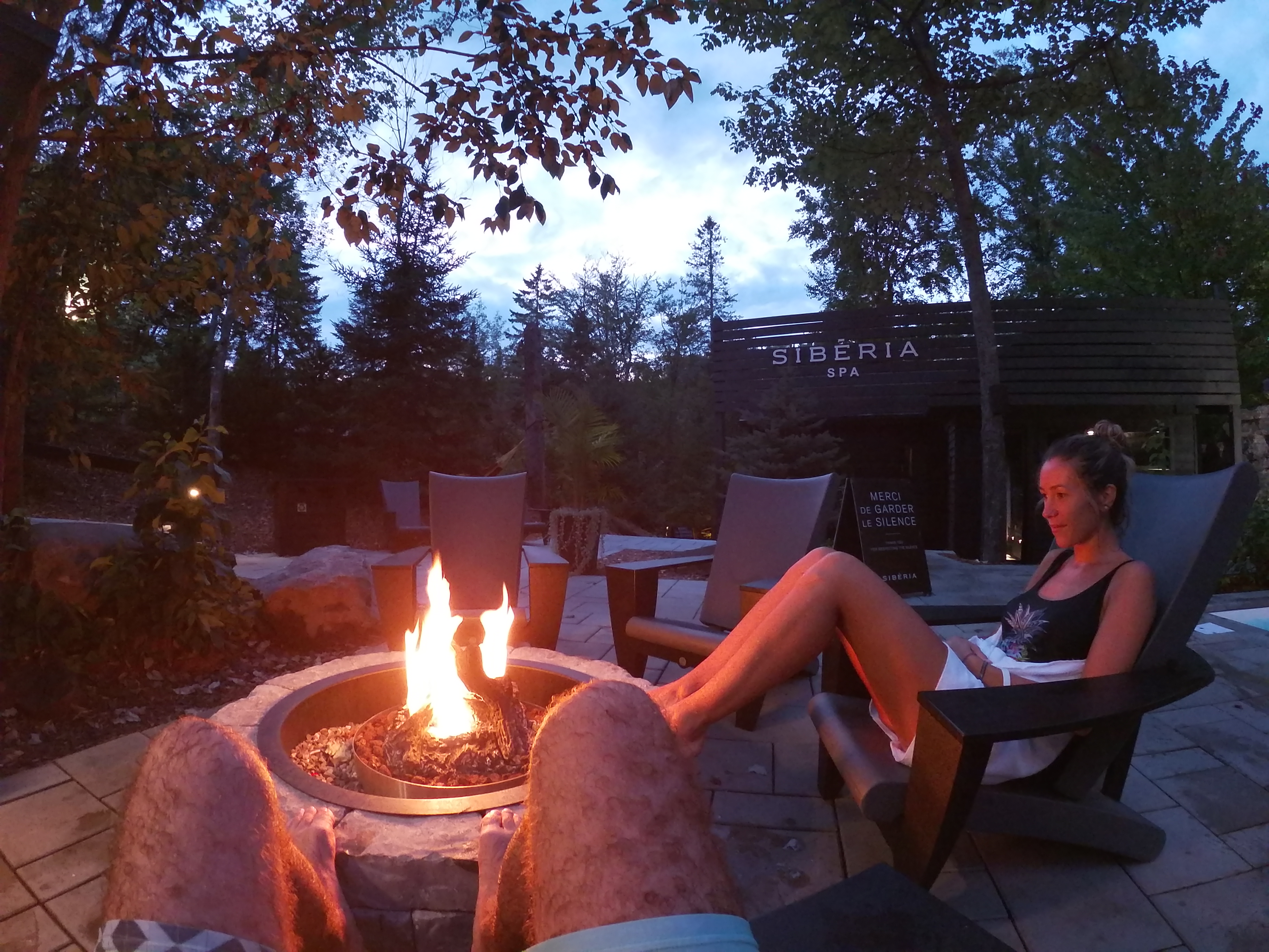 Pour nous remettre de nos émotions, nous avons fini la journée dans un SPA au cœur de la forêt : jacuzzi, hammam, yourte avec feu de cheminée et autre, c’était absolument génial !