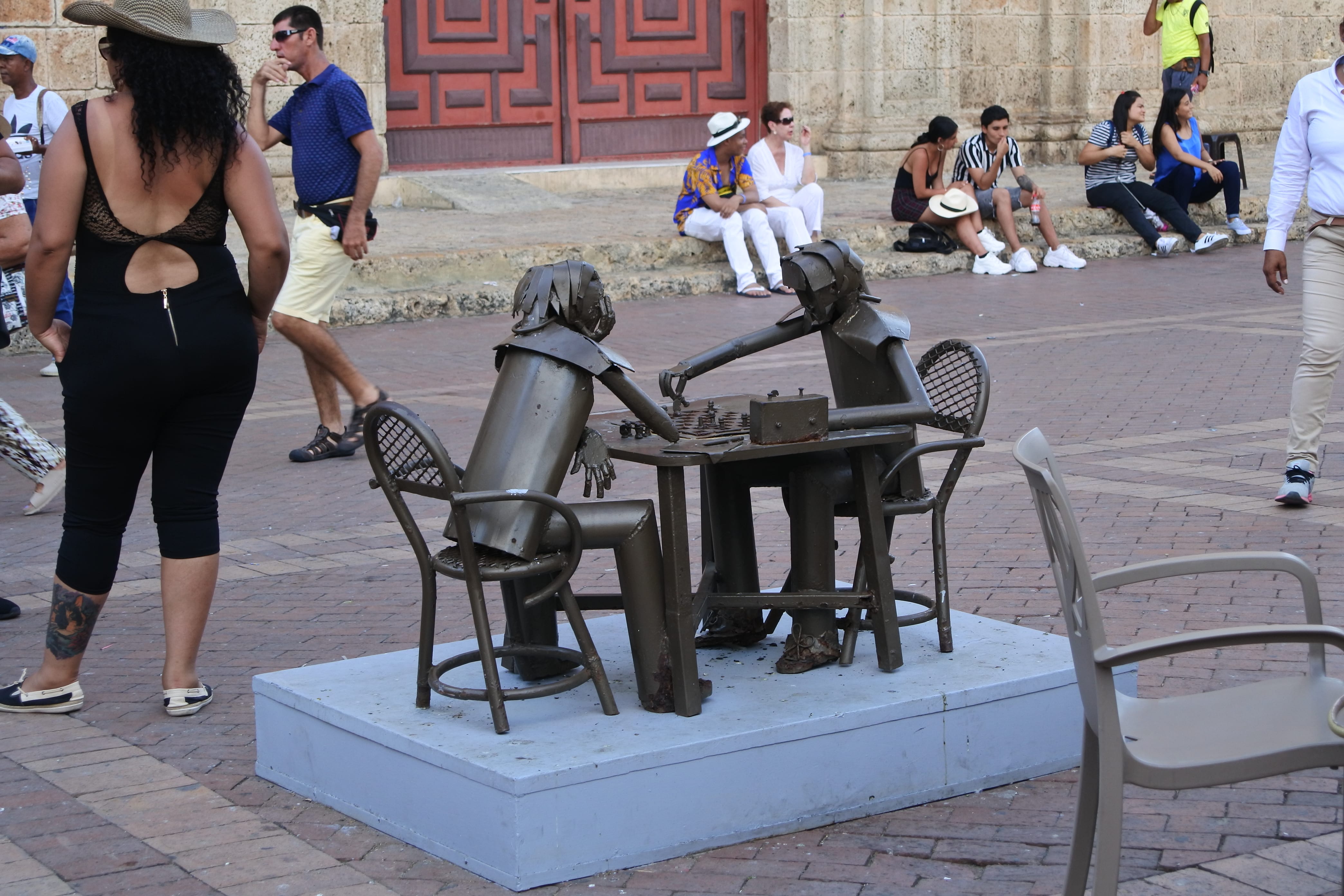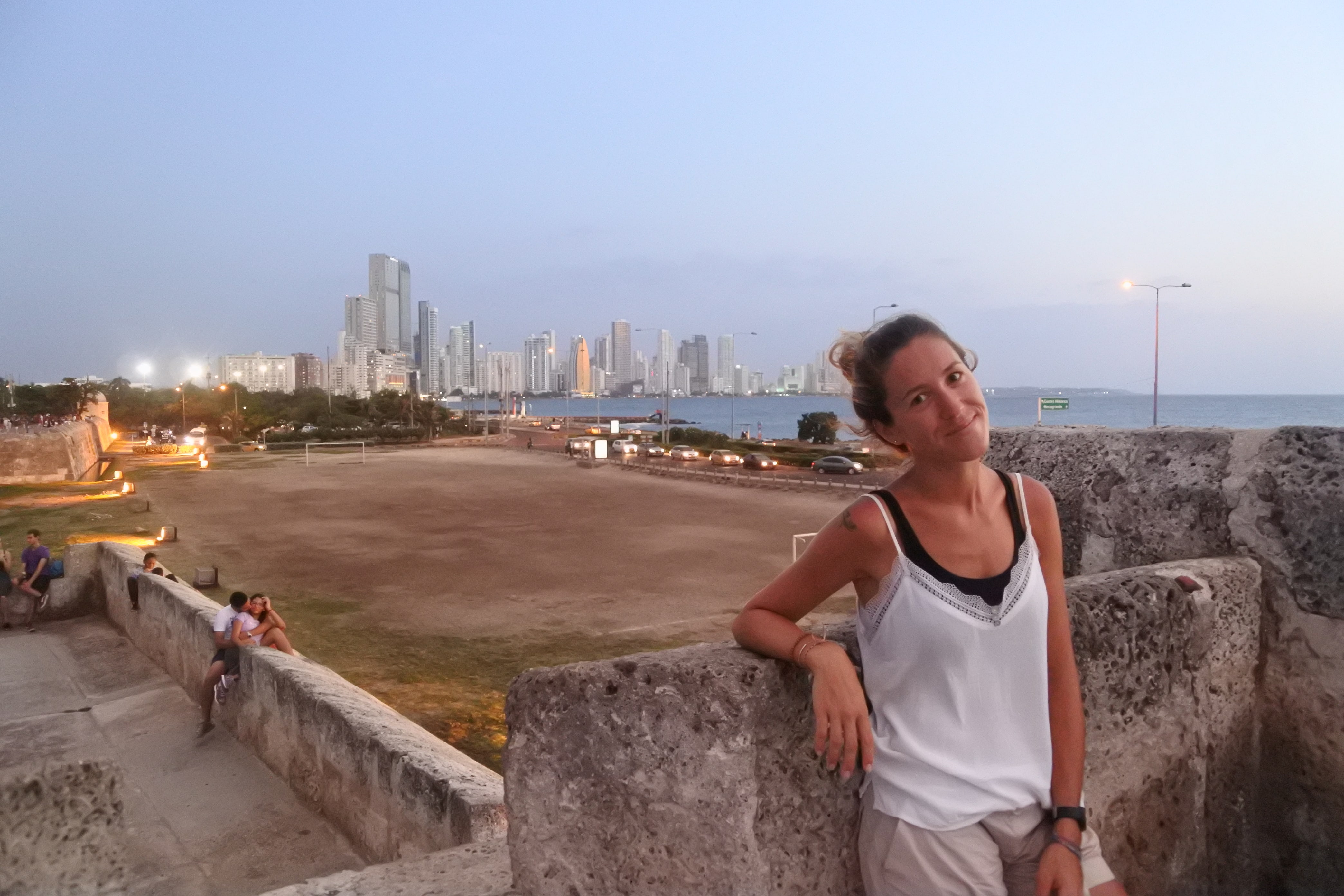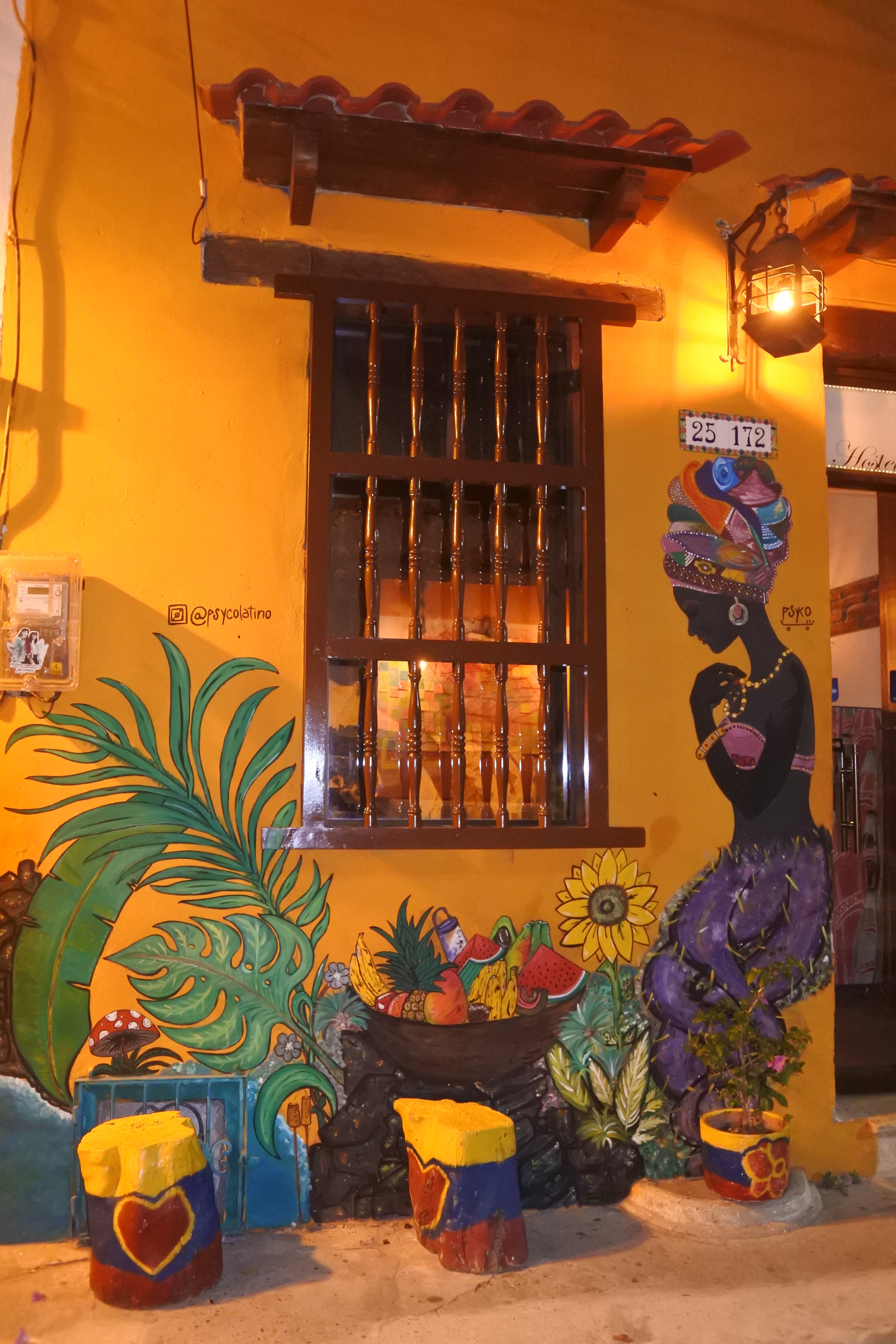 Ensuite, nous avons de nouveau fait une visite avec un guide, en anglais, pour découvrir et en apprendre plus sur l’histoire de la veille ville. Bon nous en savions déjà pas mal, car on s’était bien renseigné, mais nous avons pu aller dans des endroits que nous n’avions pas vu. Nous avons ainsi pu admirer une nouvelle statue de Botero, l’artiste qui a réalisé les statues de Médellin ; « le plus grand artiste de Colombie » selon notre guide. Nous avons aussi profité du coucher du soleil du haut des remparts, avant de filer dans un bar à rhum, où l’on nous a accueilli avec un Free Hug (« câlin gratuit ») ainsi qu’une dégustation d’un rhum de 8 ans accompagné d’un morceau de chocolat. Toujours dans cet ordre, c’est la consigne : rhum puis chocolat, rhum puis chocolat. Et sur le chemin du retour nous avons découvert de nouveaux graffitis, encore, toujours plus beaux les uns que les autres !