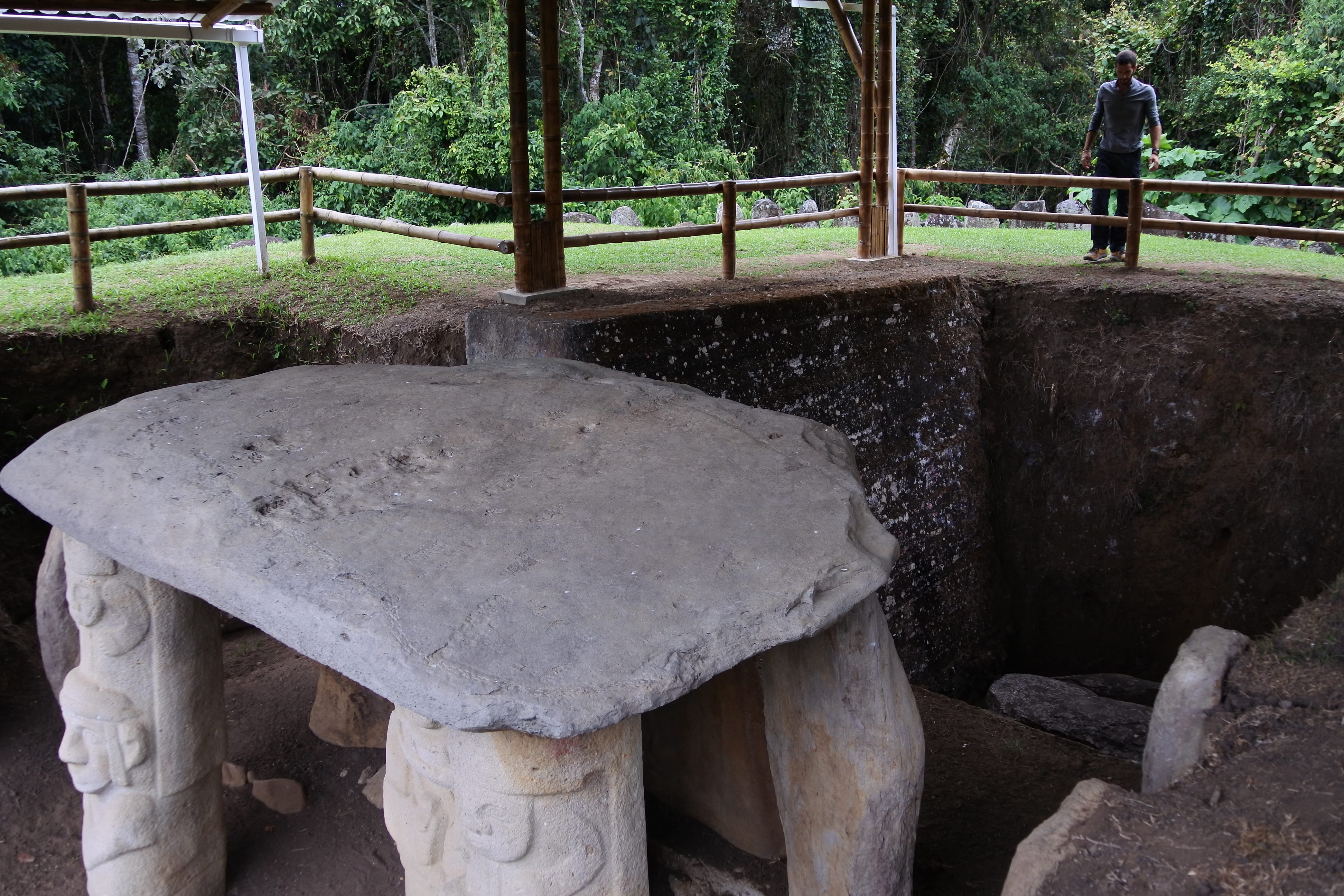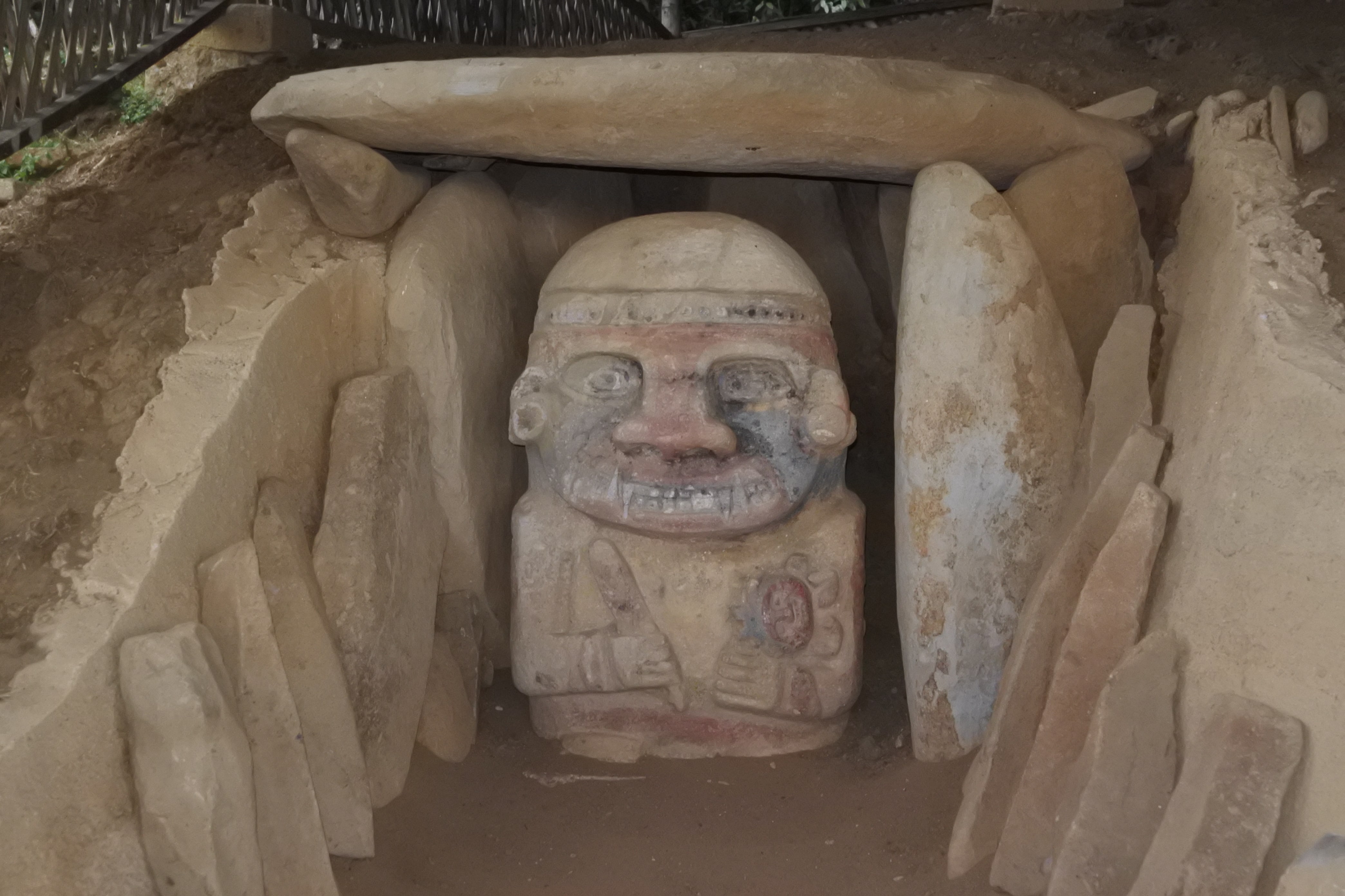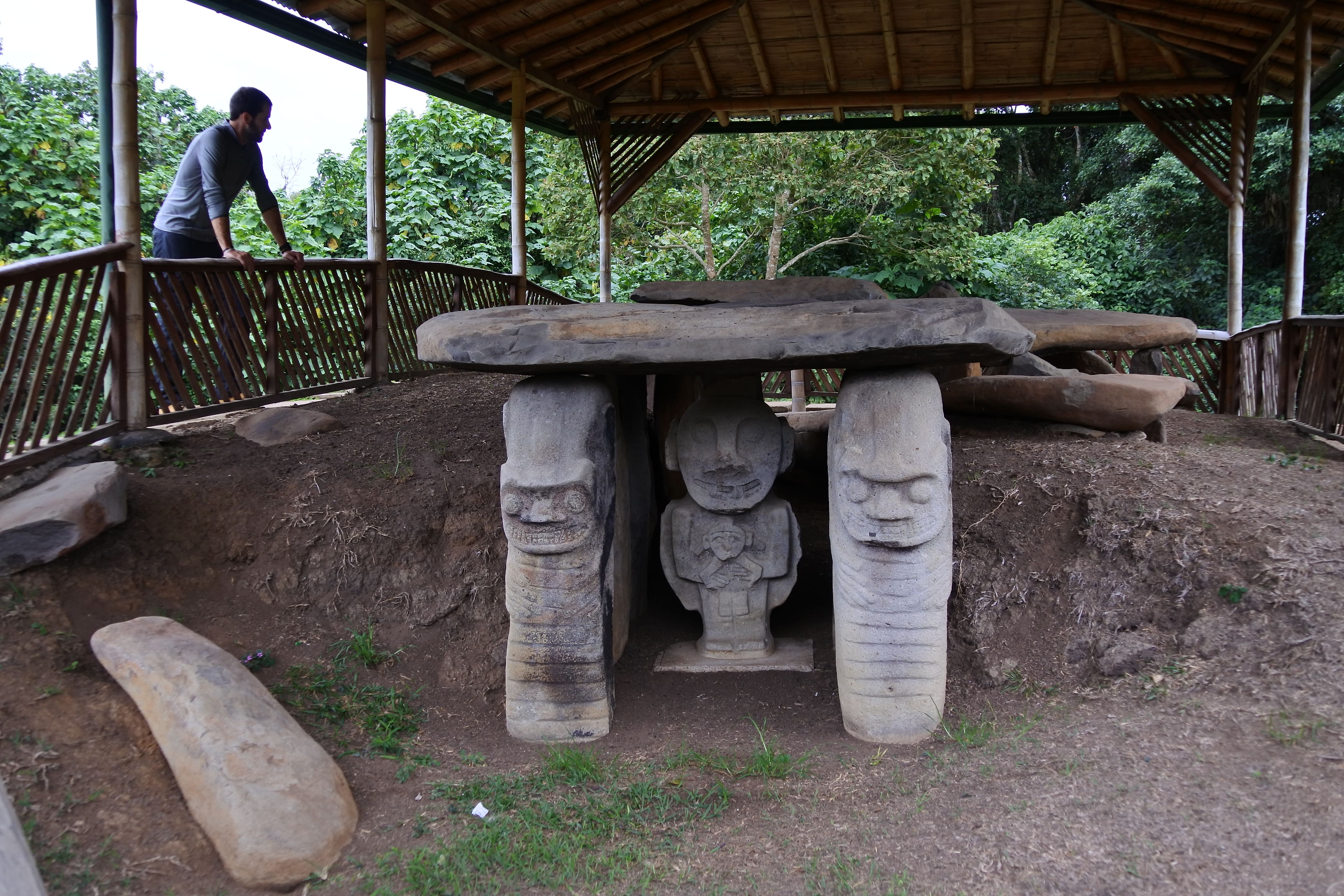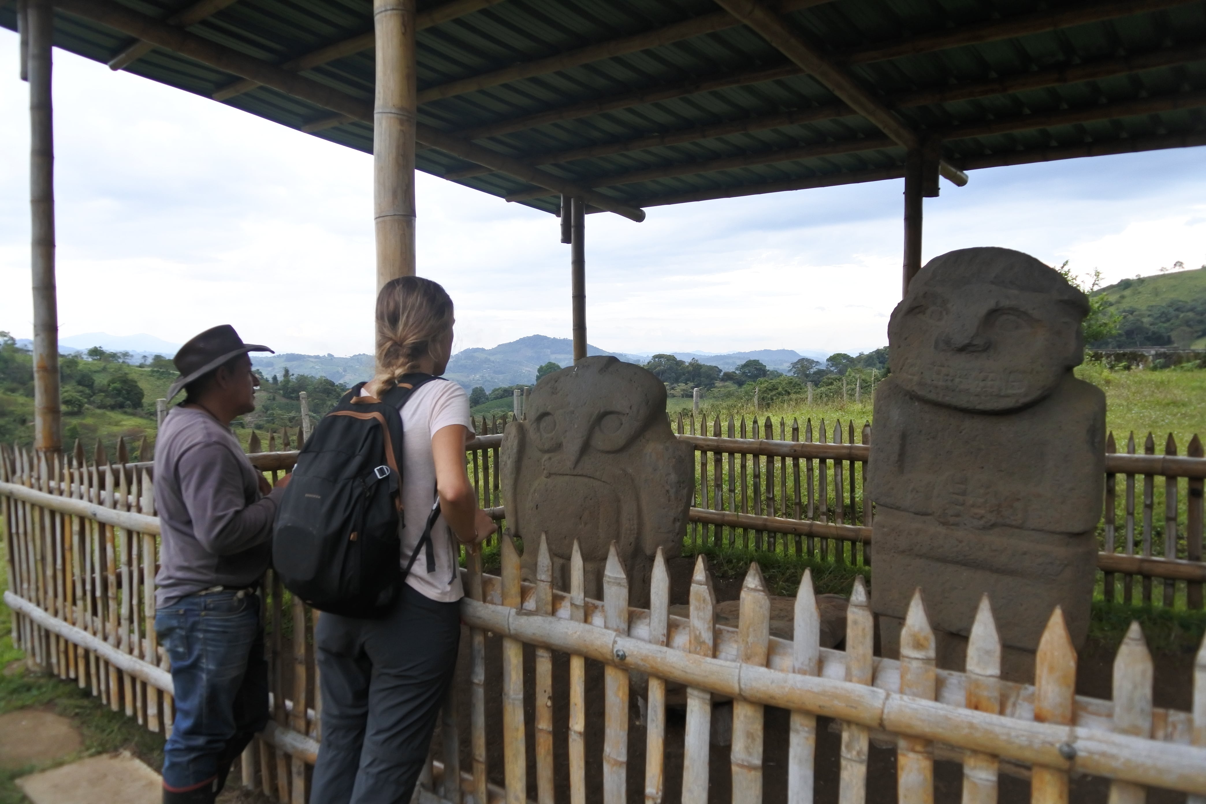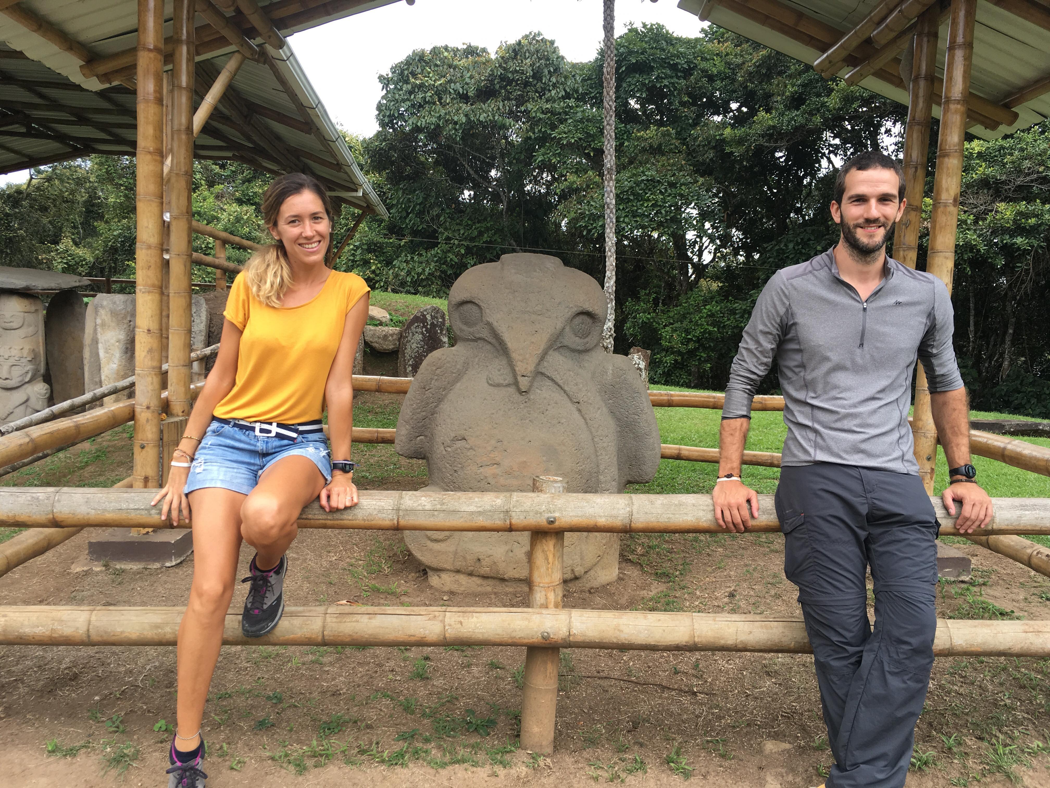 Deux jours sur place pour découvrir le trésor archéologique de la région. Ce sont près de 500 statues ayant entre 13 000 et 1 000 ans découvertes il y a une centaine d’années, issues de peuples indigènes de la région, et ayant entièrement disparus ! Ces statues étaient disséminées partout dans la région de San Agustin, et sont désormais regroupées par sites : le plus proche est accessible à pied depuis San Agustin (ou en bus depuis le centre) et les deux autres sont accessibles à pied mais aussi à cheval : ce que nous avons décidé de faire pour le premier jour 🙂 Il existe d’autres sites encore, plus éloignés, accessibles en jeep, mais nous n’aurons pas le temps d’y aller.