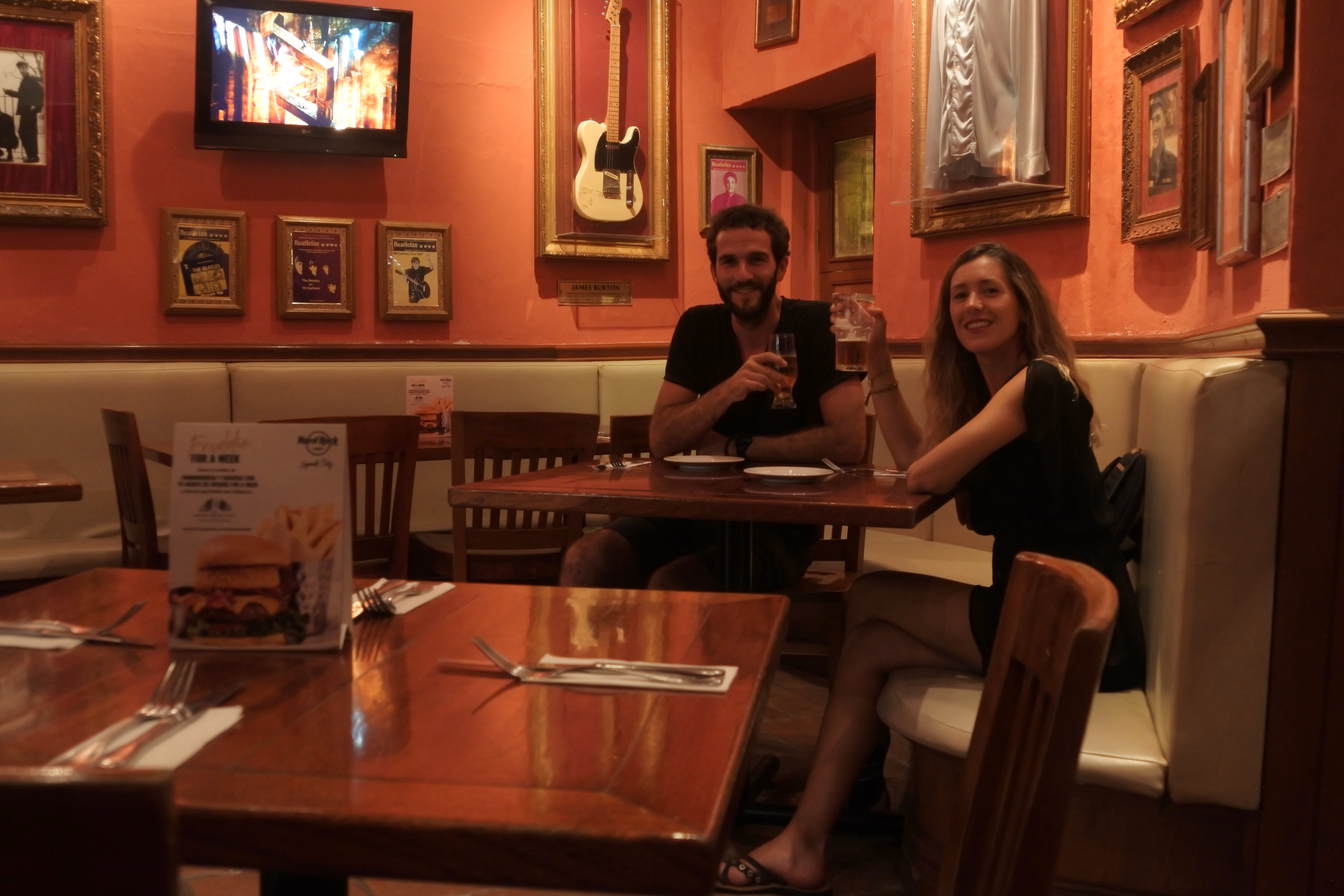 Nous avons terminé la journée au Hard Rock Café, qui est un incontournable pour Guillaume et comme c’était sa journée c’est lui qui a choisi ! Et il a eu droit à son gâteau, offert par l’hôtel (!) ainsi qu’à une bougie… Enfin, en vrai, il a soufflé le briquet 😀